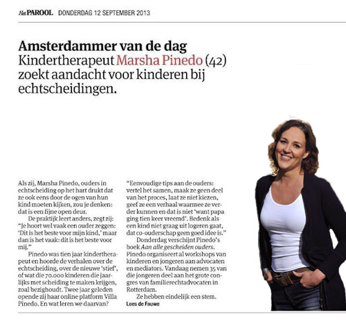 De vrouw die Villa Pinedo oprichtte en die samen met haar team in Nederland een groot verschil aan het maken is voor en met kinderen van gescheiden ouders. Ze werkt met de kinderombudsman, Ministerie van VWS en nog vele andere mensen die zich hard maken voor kinderen in een scheidingssituatie. Marsha is een veel gevraagde spreekster op diverse Podia m.b.t. kinderen en ouders die met een scheiding te maken hebben. Radio en tv weten haar te vinden. Wij delen de visie dat kinderen gehoord en gezien moeten worden en dat ouders meer aangereikt moeten krijgen om (v)echtscheidingen te voorkomen.